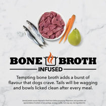 Acana Bone Broth Infused Freeze-Dried Patties for Dogs takes inspiration and ingredients across the USA, providing quality and fresh ingredients without preservatives and freeze-drying in small batches. Creating a biologically appropriate, protein-rich freeze-dried recipe with various human-grade meats, fruits and vegetables just as nature intended.