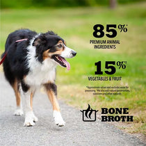 Acana Premium Chunks Wet Dog Food is a wet food recipe that offers your best friend a nutritional and balanced meal containing premium ingredients that you can see. The Beef Recipe in Bone Broth contains 85% protein, using chunks of beef, beef liver with 15% wholesome fruits and vegetables like sweet potatoes, pumpkin and carrots mixed with lamb broth and beef bone broth. This recipe contains essential vitamins, minerals and high moisture content for a complete and nutritional meal that can be used as a complete meal or mixed with your dog's kibble for a boost in flavour and nutrition.