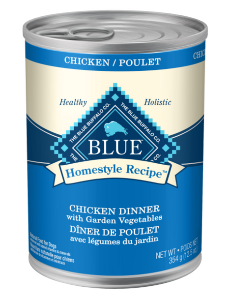 BLUE Homestyle Recipe Chicken Dinner with Garden Vegetables provides rich, wholesome nutrition with healthy, natural ingredients. Natural, high-quality chicken provides essential amino acids that dogs needs every day and hearty whole grains like brown rice and barley supply the complex carbohydrates that he needs for energy. Whole carrots and sweet potatoes, blueberries and cranberries...these are just some of the nutrient-rich fruits and veggies you'll find in BLUE's Homestyle Recipes.