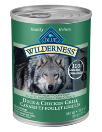 Inspired by the diet of the wolf, BLUE Wilderness Duck & Chicken Grill is a high-protein, low-carbohydrate food that provides your adult dog with a higher concentration of the duck and chicken he loves. Made with the finest natural ingredients, including generous amounts of tasty and nutritious duck & chicken, Wilderness contains no chicken or poultry by-product meals, artificial preservatives, corn, wheat or soy. Complete and balanced, BLUE Wilderness is also a sensible alternative to less convenient raw diets, which often require additional supplementation to be nutritionally complete.