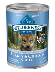 Inspired by the diet of the wolf, BLUE Wilderness Turkey and Chicken Grill is a meat-rich, grain-free food that will provide your puppy with a higher concentration of the turkey & chicken he loves. BLUE Wilderness is made with the finest natural ingredients, including generous amounts of tasty and nutritious turkey and chicken to promote healthy muscle growth. And Wilderness contains no chicken (or poultry) by-product meals, artificial preservatives, corn, wheat or soy. Formulated especially for puppies, it contains DHA and Omega 3 & 6 fatty acids to help promote a shiny coat and healthy skin.
