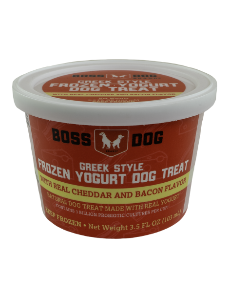 All-Natural Boss Dog® Brand Greek Style Frozen Yogurt Dog Treats are made with real Greek Style yogurt, wholesome (100% human grade) Non-GMO ingredients, contain protein, and live and active cultures (including Probiotics). In addition, they are lactose, wheat, soy and gluten free.