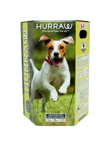 Hurraw makes the benefits of a raw diet accessible to all! Their dehydrated raw dog food is made with 100% human grade ingredients. They use local, farm fresh ingredients from neighborhood sources in Quebec, Canada. Hurraw is dehydrated using an innovative low temperature process which preserves all of the original nutrients. This yields a highly nutritious food that requires a significantly smaller suggested daily feeding than extruded kibble. The result is the best possible nutrition at about the same cost per day as kibble! Hurraw requires no refrigeration, special storage or handling.
