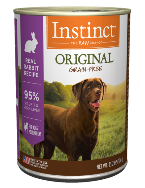 Real meat. Wholesome fruits and vegetables. This is your dog's instinctive diet. With Instinct Grain-Free Rabbit formula, your dog will enjoy a hearty and nutritious diet, free of grains or fillers. Such quality nutrition provides beneficial proteins and balanced omega fatty acids to maintain toned muscles, healthy skin, and a glossy coat. Feed instinctively to give your dog the nourishment and energy to enjoy life every day. Plus, try rotating with our other nutritious diets - your dog will love the variety.