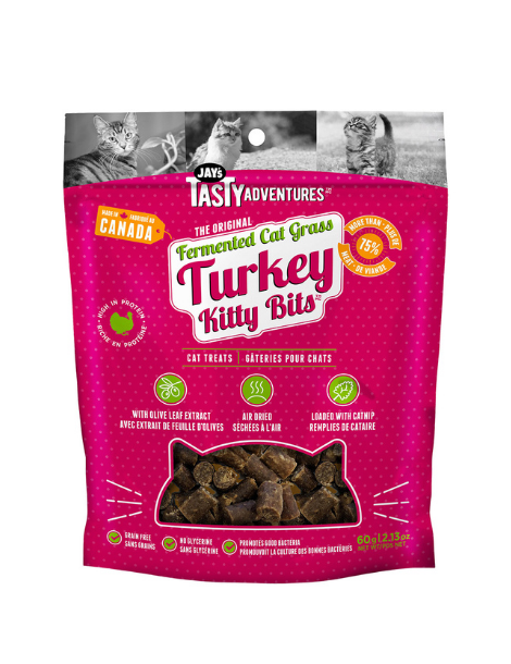 Original Fermented Cat Grass Flavored Kitty Bits are gently dehydrated, air dried, and infused with Jay's proprietary fermented cat grass blend. With OVER 75% fresh meat and spiked with catnip, your kitty is guaranteed a tasty adventure.