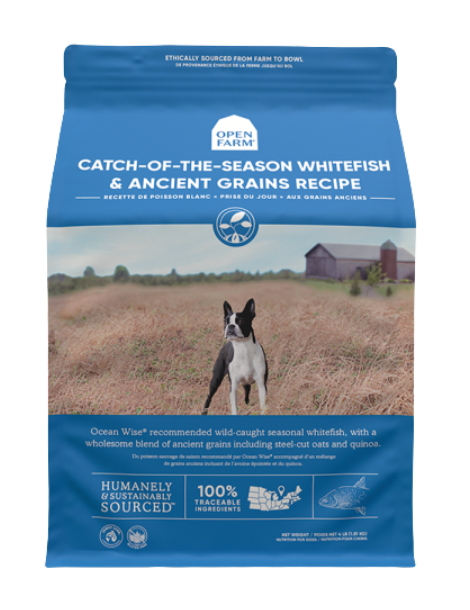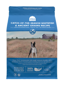 This tasty high protein, gluten-free recipe is loaded with wild-caught seasonal whitefish that are Ocean Wise approved and free of antibiotics and added growth hormones, wholesome grains like steel-cut oats, quinoa, brown rice, and chia seeds, and superfoods like coconut oil, pumpkin and turmeric. It's dry good-for-your-pup food made without peas, potatoes and legumes.