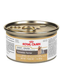 Royal Canin Yorkshire Terrier wet formula is designed exclusively for purebred Yorkshire Terriers over 10 months. Yorkies are well-known for their outgoing personalities and tiny bodies. A Yorkie's unique needs can be supported with targeted nutrients. Yorkshire Terrier Adult promotes optimal coat health and stimulates a fussy appetite. It contains antioxidants to support sensory organs (eyes and ears) and promote a long and healthy life.
