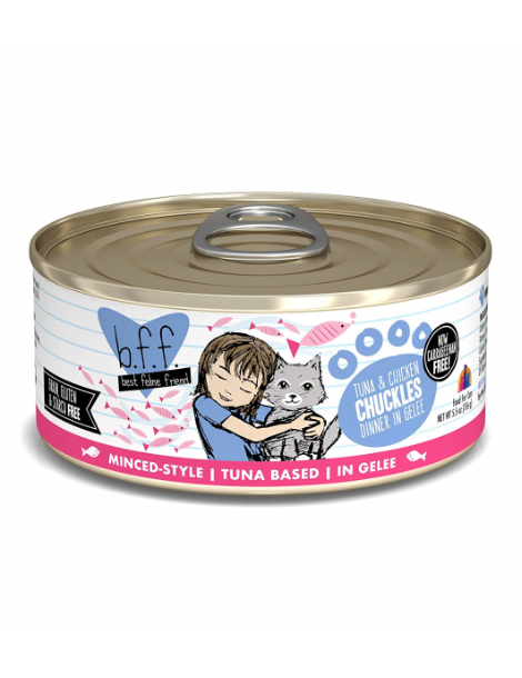 Best Feline Friend's Tuna and Chicken Chuckles provides the best you can get for your furry little feline purr machine! With a high quality protein focus and limited carbohydrates, your kitty will enjoy BFF's grain free, low fat recipes that also deliver the high moisture your cat needs.